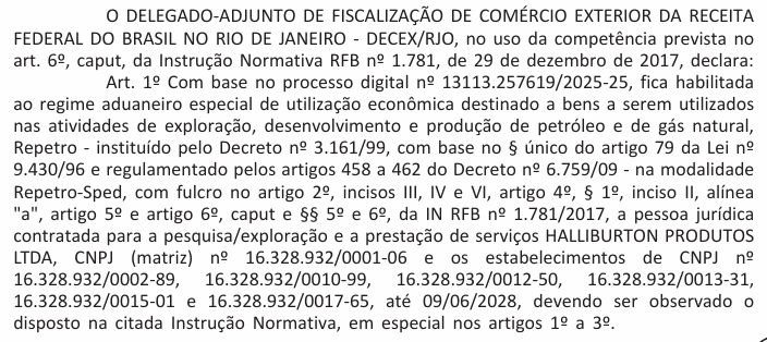 Declara habilitada ao regime aduaneiro especial de utilização econômica destinado a bens a serem utilizados nas atividades de exploração, desenvolvimento e produção de petróleo e de gás natural (Repetro), na modalidade Repetro-Sped, a pessoa jurídica que menciona.