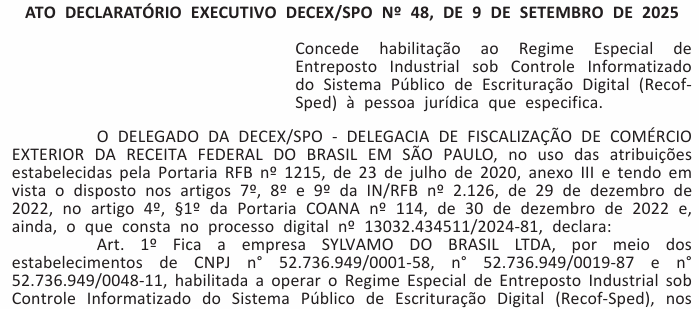 Concede habilitação ao Regime Especial de Entreposto Industrial sob Controle Informatizado do Sistema Público de Escrituração Digital (RecofSped) à pessoa jurídica que especifica.