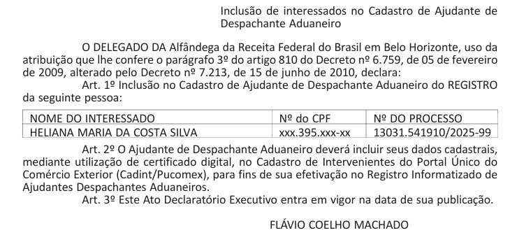 ATO DECLARATÓRIO EXECUTIVO Nº 61/ALF/BHE/MG, DE 9 DE DEZEMBRO DE 2025