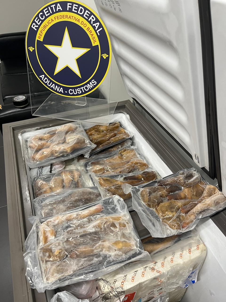 Na quinta-feira (12), a Receita Federal encontrou uma carga inusitada em meio aos volumes despachados no Aeroporto Internacional de Foz do Iguaçu. O quantitativo foi identificado como salmão congelado, mas com a averiguação mais detalhada por parte dos servidores, outro produto foi identificado.