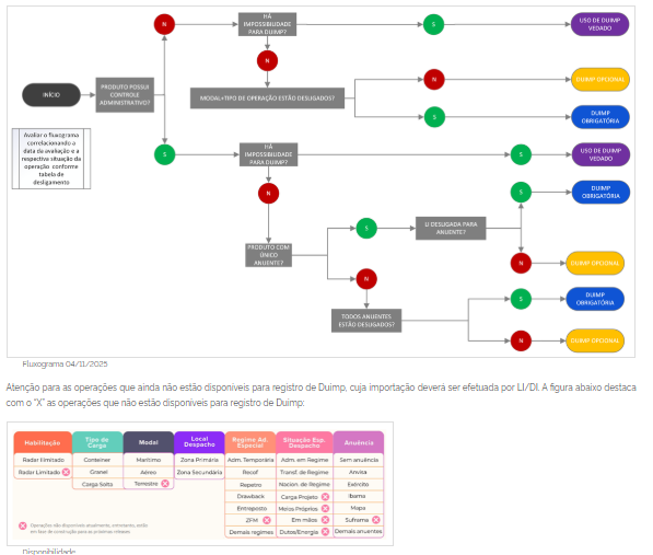 Como forma de facilitar o entendimento do Cronograma, foi elaborado fluxograma para verificação diária das regras de DUIMP obrigatória, DI obrigatória ou DUIMP opcional.Fluxograma 04/11/2025