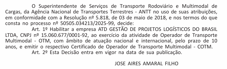 Habilitar empresa, ao exercício da atividade de Operador de Transporte Multimodal-OTM