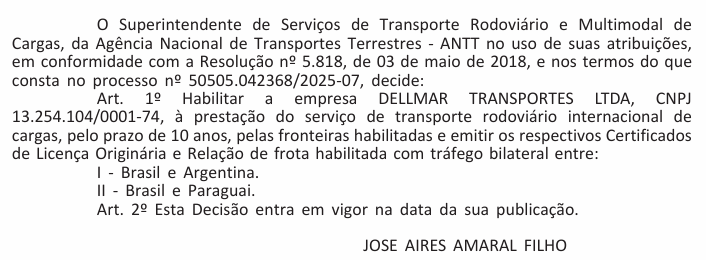 Habilitar empresa, à prestação do serviço de transporte rodoviário internacional de cargas