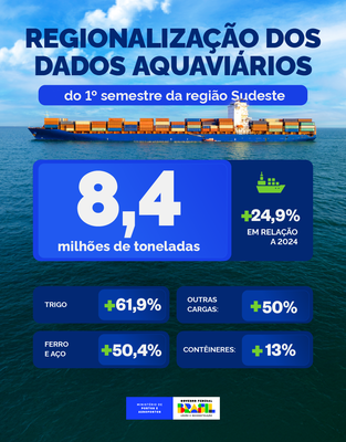O Porto do Rio de Janeiro teve o melhor resultado da Região Sudeste e foi destaque no primeiro semestre de 2025. De acordo com o balanço semestral da Agência Nacional de Transportes Aquaviários (Antaq), o terminal carioca movimentou 8,4 milhões de toneladas no período, um aumento de 24,9% sobre o ano passado.Regionalização Sudeste