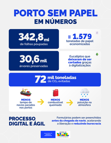 Fonte: https://www.gov.br/portos-e-aeroportos/pt-br/assuntos/noticias/2025/09/porto-sem-papel-ja-evitou-o-corte-de-30-mil-arvores-e-a-emissao-de-72-mil-toneladas-de-co2