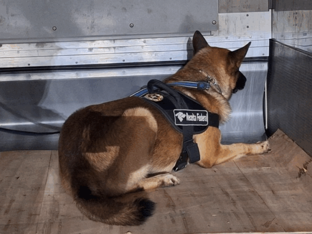 Outra ferramenta importante é a participação dos cães de faro da Receita Federal. Durante a fiscalização dessa quarta-feira, 18 de junho, dois cães de faro da Alfândega de Santos auxiliaram nos trabalhos de verificação da carga selecionada. Os dois sinalizaram positivamente para a presença de drogas na estrutura do contêiner.