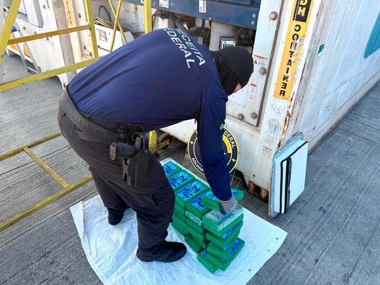 Com a operação de hoje, a Receita Federal já reteve 1.178 kg de cocaína nos portos do Paraná e de Santa Catarina, em 2025.