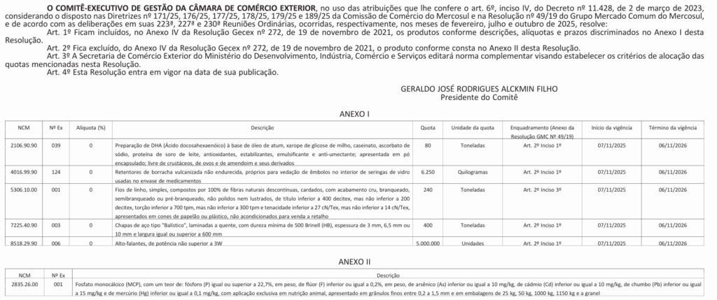 Altera o Anexo IV da Resolução Gecex nº 272, de 19 de novembro de 2021 (Ex-tarifários)