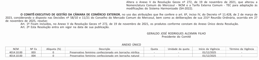 Altera o Anexo V da Resolução Gecex nº 272, de 19 de novembro de 2021, que alterou a Nomenclatura Comum do Mercosul – NCM e a Tarifa Externa Comum- TEC para adaptação às modificações do Sistema Harmonizado (SH-2022).