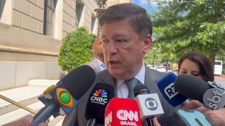 Em viagem aos Estados Unidos junto a uma comitiva de parlamentares brasileiros, o senador Carlos Viana (Podemos-MG) afirmou nesta segunda-feira (28) que o “maior problema” das tarifas impostas pelo presidente Donald Trump não vem da anistia, mas da expansão militar e geopolítica do Brics, grupo de países emergentes o qual o Brasil faz parte. De acordo com Viana, que foi aos EUA para reuniões junto a empresários e congressistas norte-americanos com o objetivo de discutir o chamado “tarifaço” de 50% imposto aos produtos brasileiros, a perspectiva surge de conversas que teve com representantes do governo dos Estados Unidos e de membros do conselho consultivo. “Há um problema grande hoje e isso foi identificado nas reuniões que fiz com os representantes do partido Republicano na Flórida. O Brasil tomou uma posição no Brics que hoje os EUA não concordam, que não é só um grupo econômico”, disse o senador em entrevista coletiva após uma reunião com a classe empresarial. “O Brasil está trabalhando na geopolítica militar com a China e os americanos não querem esse acordo.” No dia 17 de julho, o presidente Donald Trump publicou uma carta nas redes sociais pedindo pela paralisação do julgamento do ex-presidente Jair Bolsonaro (PL). Bolsonaro é réu em um caso criminal por supostamente participar de uma tentativa de golpe de Estado após perder as eleições de 2022. “O principal problema não está sendo a questão política da anistia. A anistia existe, esse problema é um dos pontos que está sendo colocado pelo governo americano”, continua o parlamentar, que acrescenta que, enquanto o grupo composto por 11 países, incluindo China e Rússia, tratava apenas de questões econômicas, não chamava a atenção dos EUA. Viana citou o suposto envolvimento brasileiro como uma presença na “área de satélites.” Viagem a Washington Uma comitiva de senadores brasileiros iniciou nesta segunda-feira (28) uma série de agendas que, segundo eles, têm o objetivo de tentar negociar as tarifas impostas ao Brasil. Além das reuniões com empresários dos EUA, os encontros também incluem conversas com congressistas norte-americanos. Oito parlamentares participam da delegação. Os compromissos aconteceram pela manhã na Embaixada do Brasil em Washington e pela tarde na sede da U.S. Chamber of Commerce, para um encontro com lideranças e representantes do Brazil-U.S. Business Council. Os senadores começaram a chegar aos Estados Unidos no fim de semana.